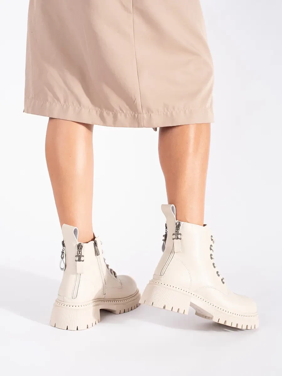 Smėliniai su raišteliais Leather Auliniai batai sukurti kasdieniam patogumui ir tvarkingam siluetui. Stabilus padas ir tvirtas aulo sukirpimas leidžia žingsniuoti užtikrintai – nuo darbo iki savaitgalio.